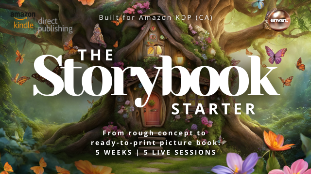 A 5-week pathway for children’s books and fully illustrated titles. You’ll map words and images page by page, build your interior in Canva or InDesign, design a cover that reads well for kids and caregivers, upload to KDP, and order a physical proof.